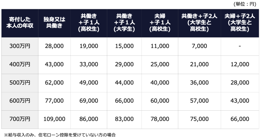 ふるさと納税で自己負担が2000円になる寄附金額には上限額があり、年収や家族構成により異なります。