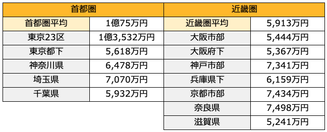 首都圏平均はいうまでもなく東京23区が引き上げています。東京23区の新築マンションの平均価格は1億3,532万円で、他の地域を圧倒しています。日本の人口が減るなかにあって、東京都の人口は今なお増加。人気のエリアだけに、価格が高騰しています。