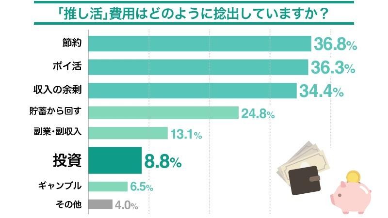 トップは節約(36.8%)。日々がんばって節約したそのお金で推し活をしていることがうかがえます。