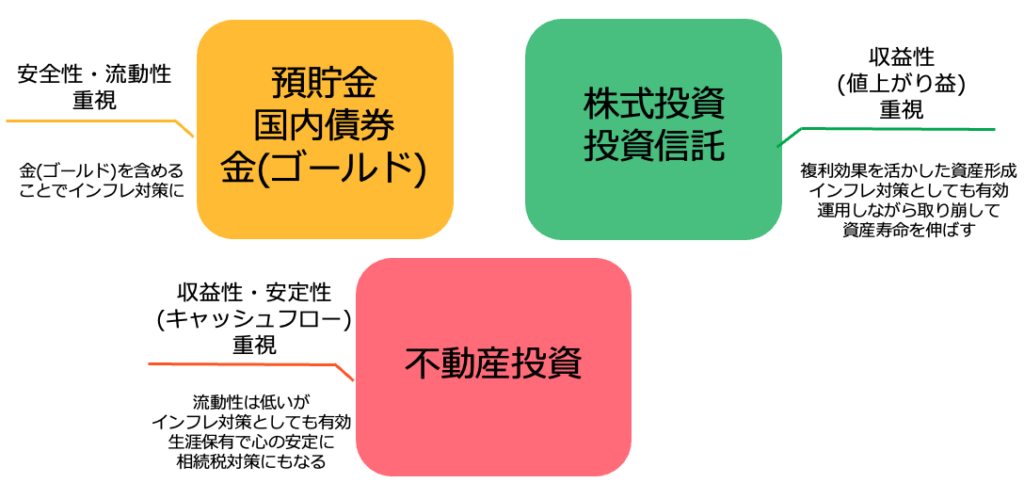 これは、預貯金・債券・株などに実物資産である「不動産」を組み合わせるというものです。