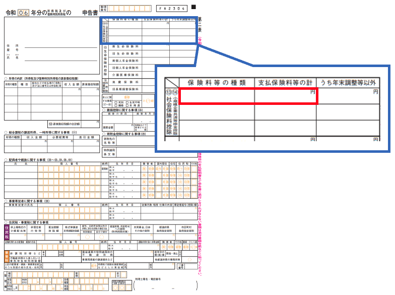 勤め先で配られる年末調整の書類のひとつに「給与所得者の保険料控除申告書」があります。給与所得者の保険料控除申告書は、生命保険料控除、地震保険料控除、社会保険料控除、そして小規模企業共済等掛金控除を受けるために提出する書類です。