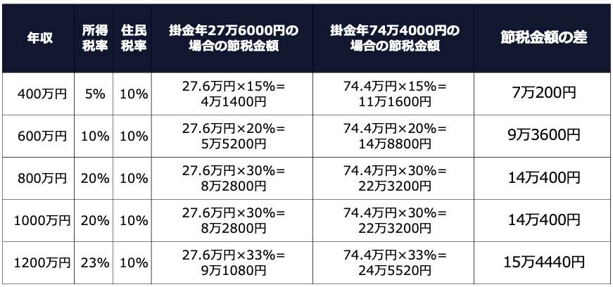 たとえば、年収400万円の会社員の場合、節税額は次のようになります。