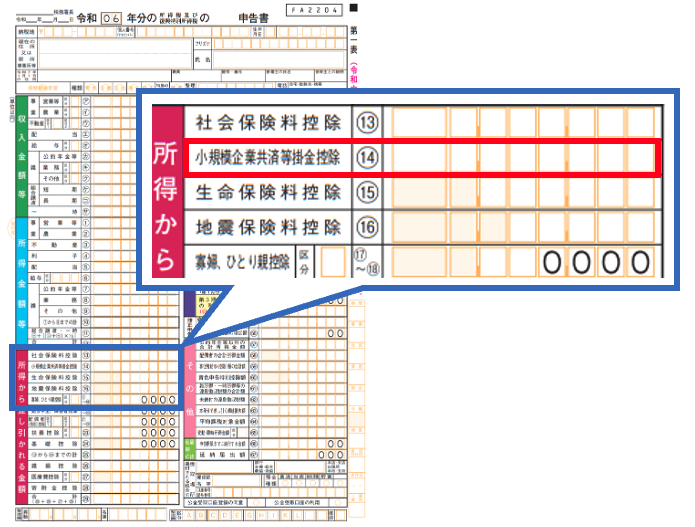 第一表にある「小規模企業共済等掛金控除」の欄に、iDeCoの掛金額(合計金額)を記載します。