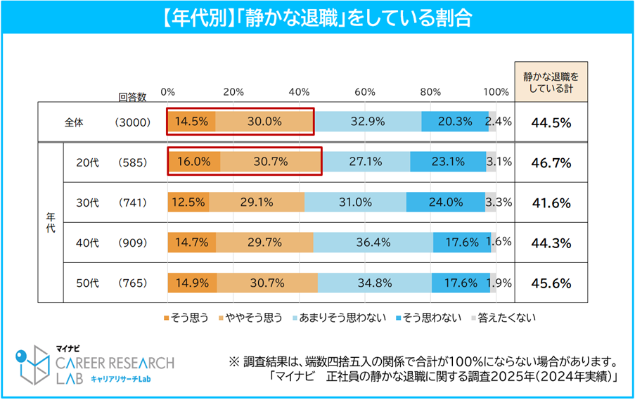 参照:マイナビキャリアリサーチLab 「正社員の静かな退職に関する調査2025年(2024年実績)」
