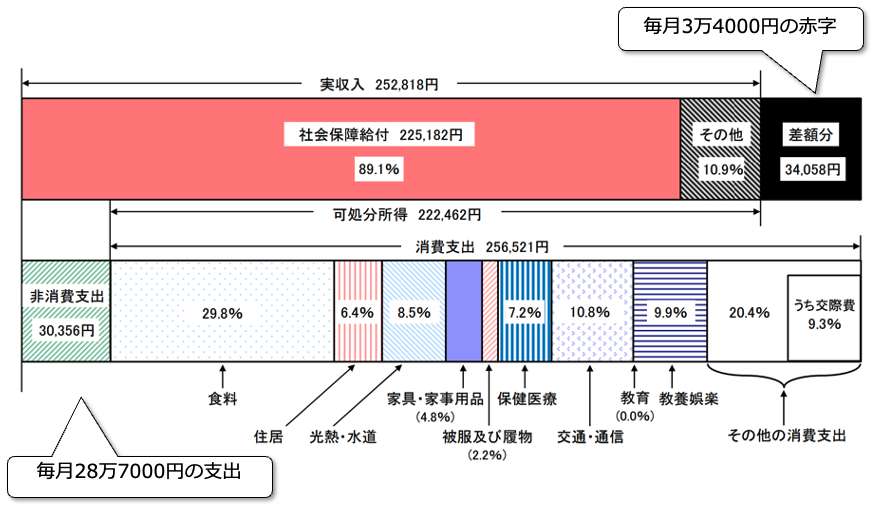 <夫婦高齢者無職世帯の家計収支(2024年)>
